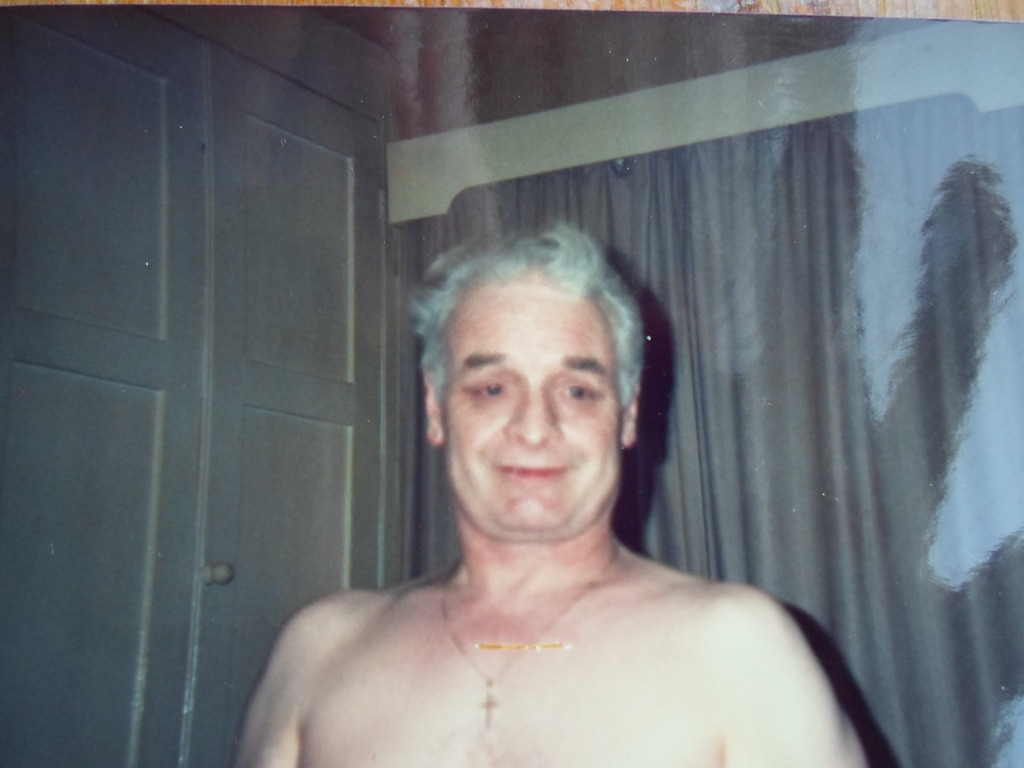 By the way guys, what I would like to add is, if anyone of you out there does want to see this photo of my Dad smiling away to me close-up to well just IMAGINE to yourselves now that yours truly look-like her Dad, "DARK HAIR and FLAT CHESTTED" course, you got to remember guys, my dad did have once upon a time dark hair, so just IMAGINE right now that if you see anyone wondering around, listening to her Music on her MP-3 player that I've nicked-name her "ipoddywaddy" after her favourite Group "Showaddywady" well like I had already describe herself to you guys already I'm DARK HAIR and FLAT CHESTED!!!  It's me, that you see!